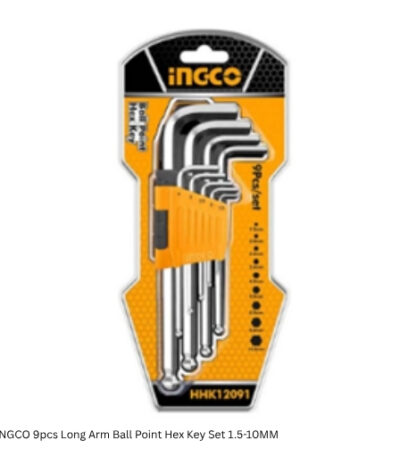 INGCO 9pcs Long Arm Ball Point Hex Key Set 1.5-10MM