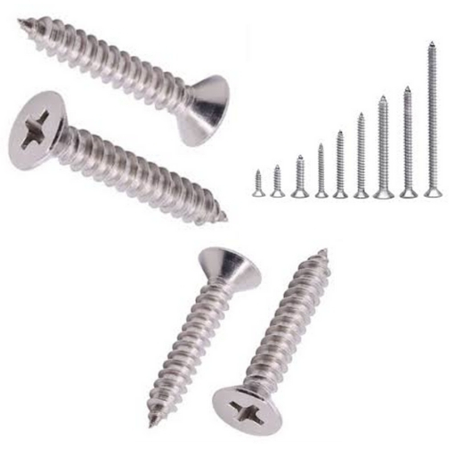 Flat head self‑tapping screw 1/4” — sharp thread for plastics, timber and sheet metal.