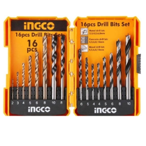 INGCO 16 pcs Metal Masonry & Wood Drill Bit Set