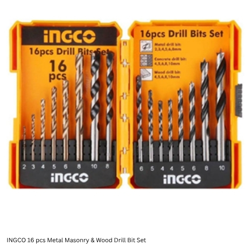 INGCO 16 pcs Metal Masonry & Wood Drill Bit Set