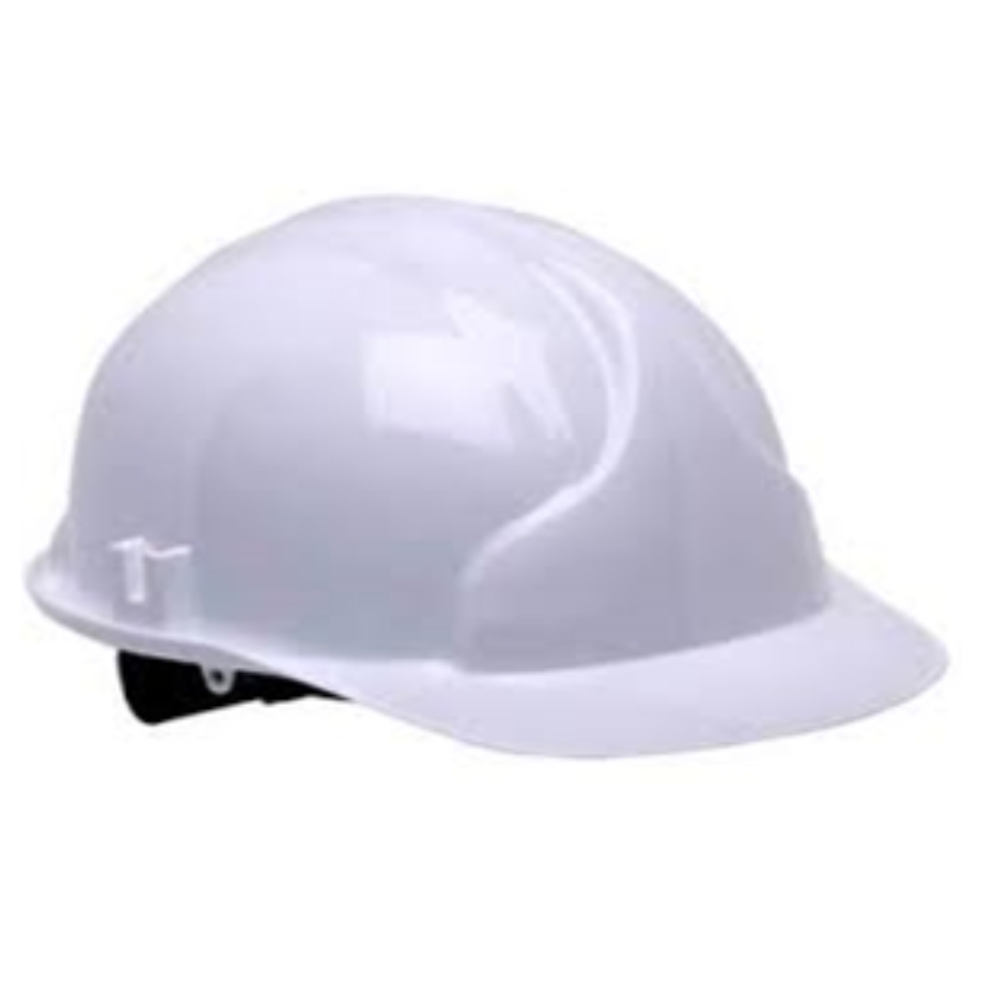 Impact‑resistant safety helmet WHITE with adjustable suspension for a secure, comfortable fit.
