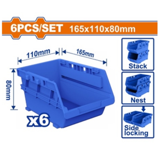 WADFOW BLUE STACKABLE STORAGE BIN 115X110X80MM (6PCS SET) WTB833